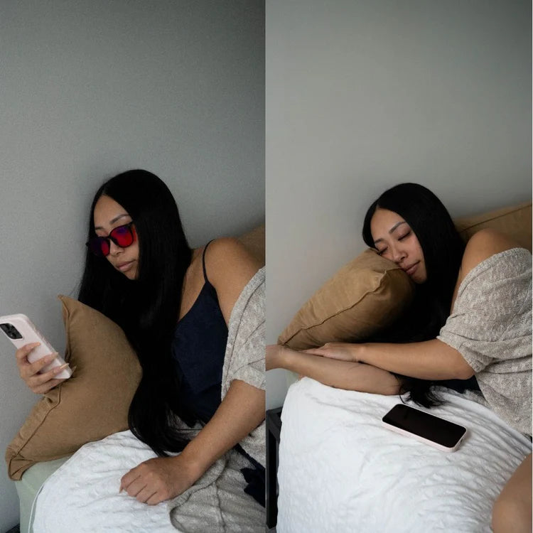 Protect your eyes & sleep better naturally with our red lens blue light blocking glasses.